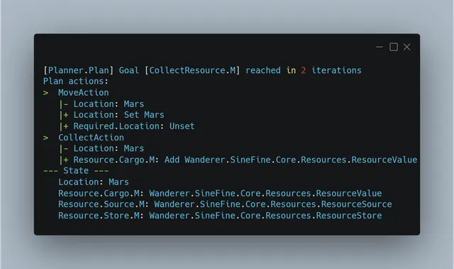 Details about the Unity implementation of a GOAP algorithm for the game AI in Sine Fine.